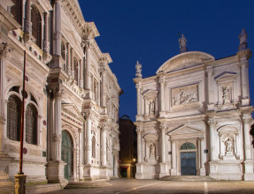 1460-1470 годы стали переломным периодом для венецианской архитектуры Возрождения. Это связано с приходом архитекторов из глубинки и из Ломбардии, в числе которых был и Мауро Кодусси, автор знаменитой Часовой башни Torre dell`Orologio на площади Святого Марка, Старых прокураций и других шедевров, которые по сей день впечатляют своей красотой. В это же время другой выдающийся архитектор, Пьетро Ломбардо, также приезжает в Венецию. В дальнейшем у двух этих знаменитых архитекторов было много совместных работ. Кодусси стал первым архитектором в Венеции, кто начал использовать в проектировании зданий флорентийские мотивы. Ему удалось успешно соединить в своих работах существовавший стиль византийской архитектуры и инновационные идеи эпохи Ренессанса. Влияние идей Брунеллески, Леона Баттиста Альберти и Микелоццо сказалось на новом облике лагуны – уже с первых работ Кадусси, начиная с Церкви Сан-Микеле ин Изола (1468-1479). Она стала первой ренессансной церковью в Венеции. И сегодня эта белокаменная церковь пленяет своими изящными пропорциями, благородным декором и спокойными формами. Сан-Микеле ин Изола обладает трехсторонним фасадом, на который Кадусси вдохновил знаменитый храм Малатеста (Темпио Малатестиано), возведенный по новаторскому проекту Альберти в середине 15-го столетия. Развитие венецианской традиции в современном ключе можно также увидеть внутри церкви Санта-Мария Формоза, где снова встречаются архитектурные элементы Брунеллески – например, серый камень, который выделяется на белой штукатурке. Кодусси любил оформлять фасады орнаментами, имел пристрастие к полукруглым формам фронтонов.